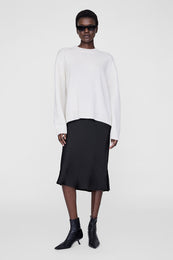 The best-selling Bar Silk Skirt in black is made from 100% double-faced silk charmeuse cut on a bias for a smooth silhouette that sits high at the waist and hugs the body through the hips. This style features an elasticated waistband for a comfortable, pull-on construction.