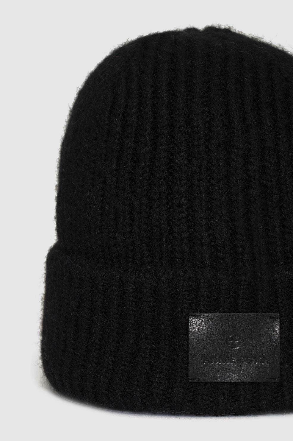 • A cold-weather accessory made from a luxurious alpaca-wool yarn with all-over, vertical cardigan-stitch detailing. Its folded brim is finished with a small leather patch debossed with ANINE BING branding.