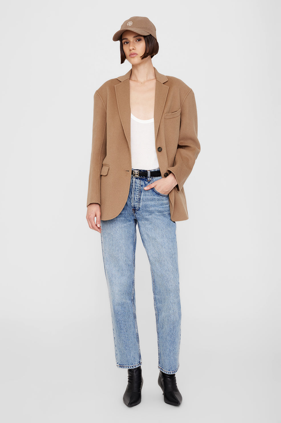 The Jeremy Baseball Cap AB is an everyday cotton-twill hat in camel. It features an adjustable back strap for a close, comfortable fit. Finished with ivory satin stitch embroidery at the center front and back for a subtle touch of branding.