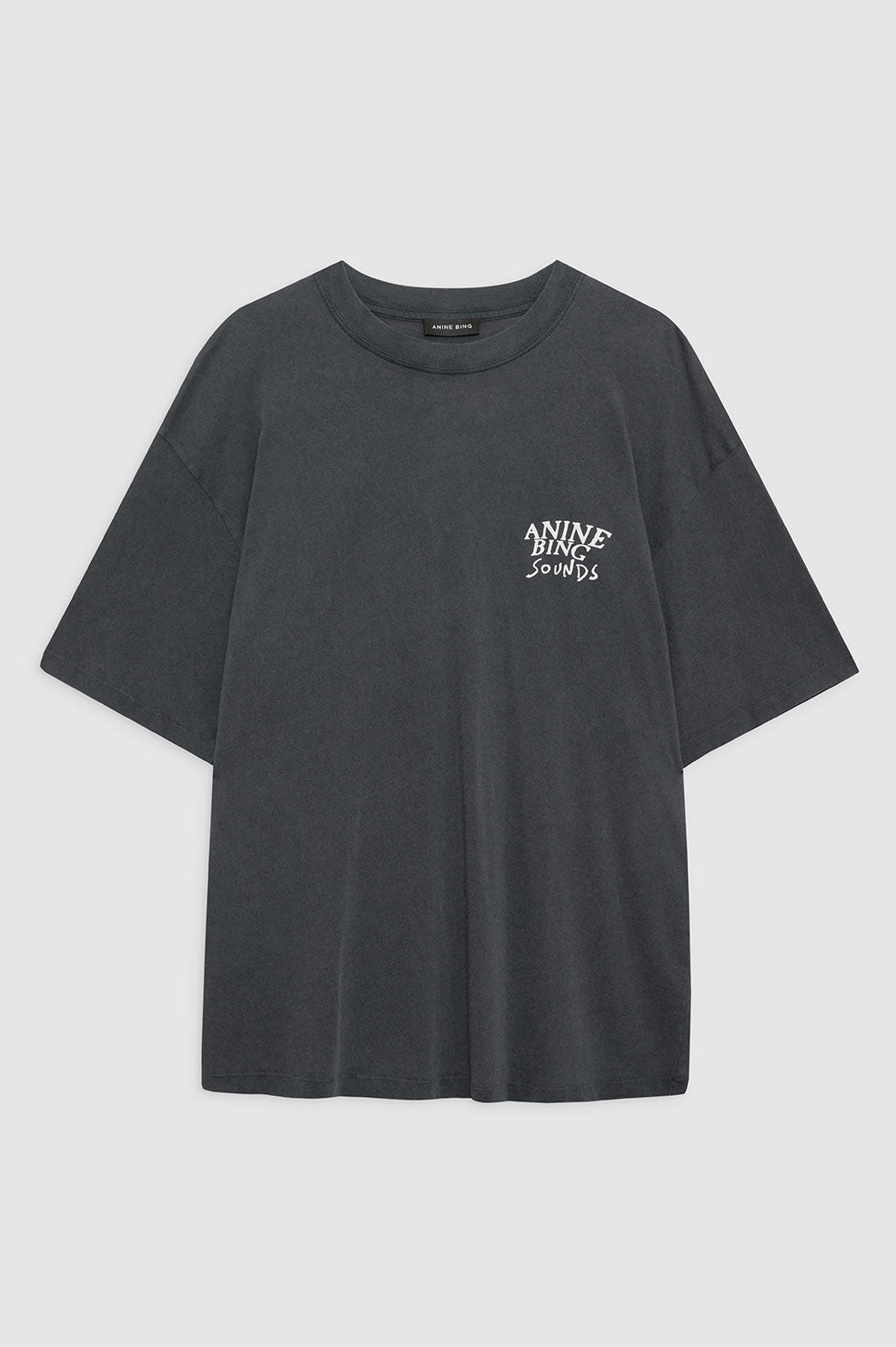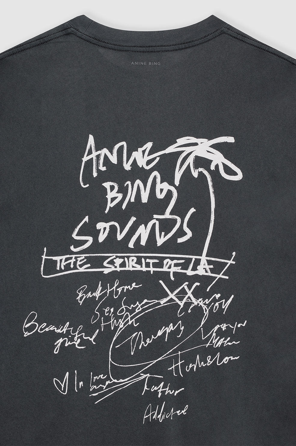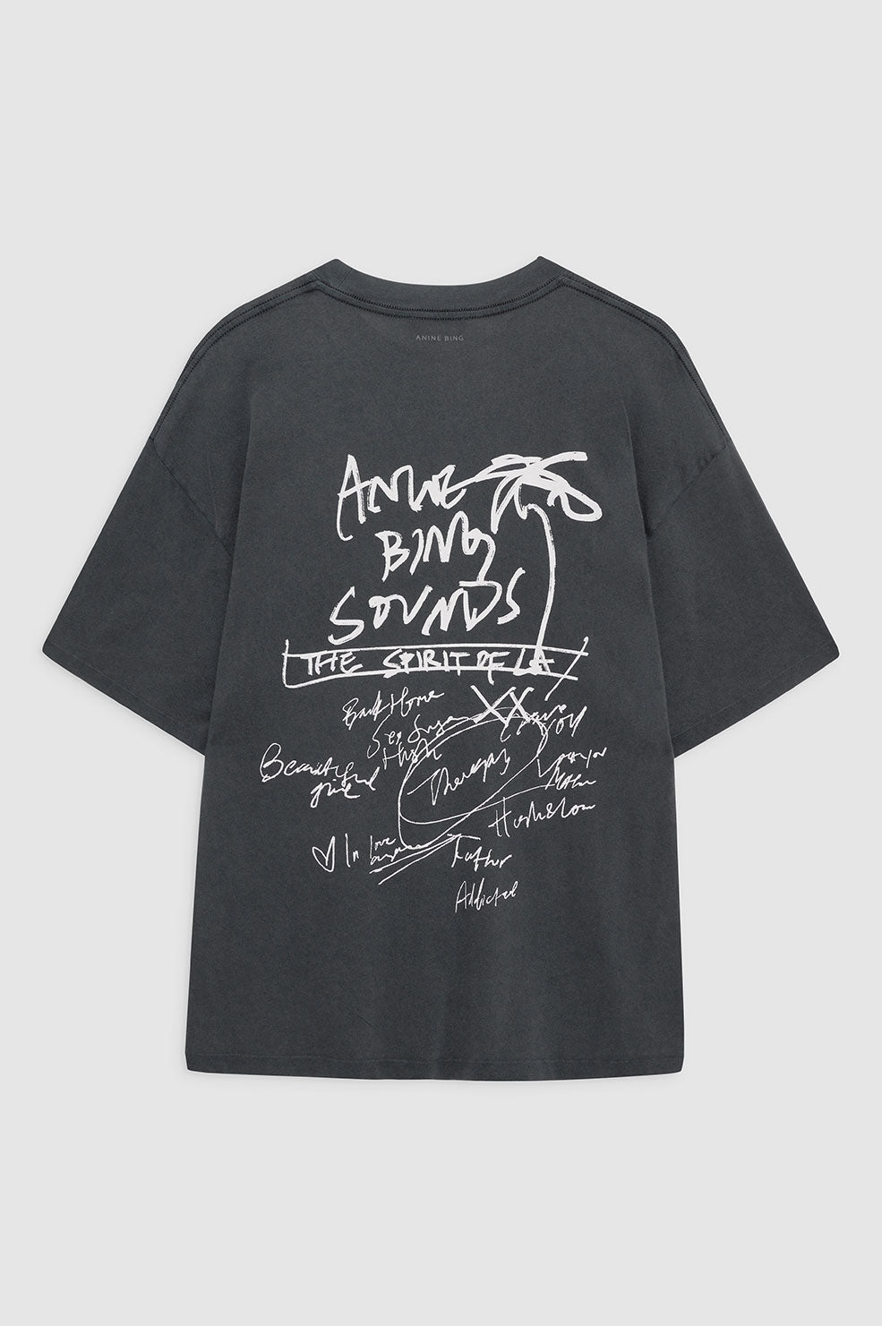 • An exclusive graphic from ANINE BING Sounds: The Spirit of Los Angeles Summer 2024. The Kent Tee Sounds embraces the essence of our brand heritage by celebrating the city of Los Angeles and music. This limited-edition style is made from a soft, lightweight jersey fabrication in washed black with dropped shoulder seams for an oversized look.