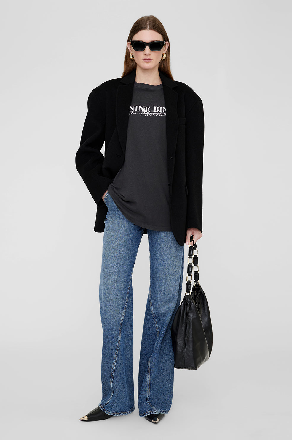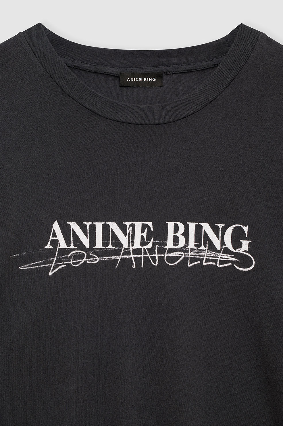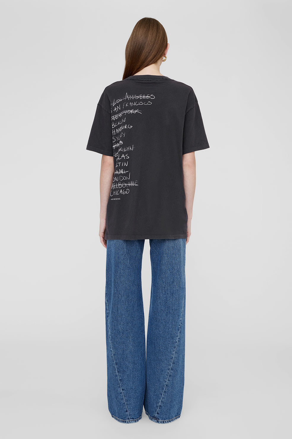 • The Walker Tee Doodle is made from a lightweight 100% organic cotton jersey fabric in a vintage black wash. This style features a screen-printed ANINE BING graphic with handwritten store locations in faded white on the front and back.
