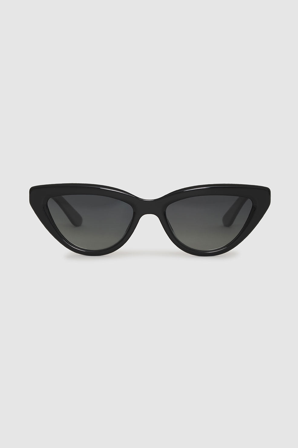 The Sedona Sunglasses are a universally-flattering, vintage-inspired pair featuring a sleek cat-eye shape with black acetate frames and matching black lenses. Accented with a gold-tone ANINE BING monogram at each temple. Polarized with UV400 protection.