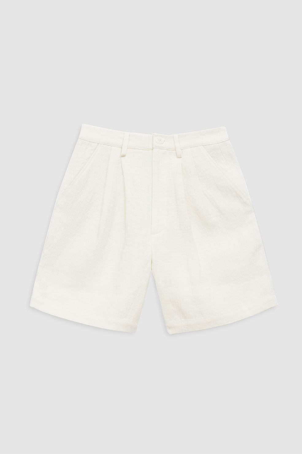 • Inspired by the Carrie Pant, the Carrie Short in eggshell is a pleated, trouser-inspired bottom made from heavyweight 100% linen with natural texture and a slightly worn appearance. This tailored style is unlined and features five functional belt loops, two back welt pockets, slanted front pockets, and a four-button closure.
