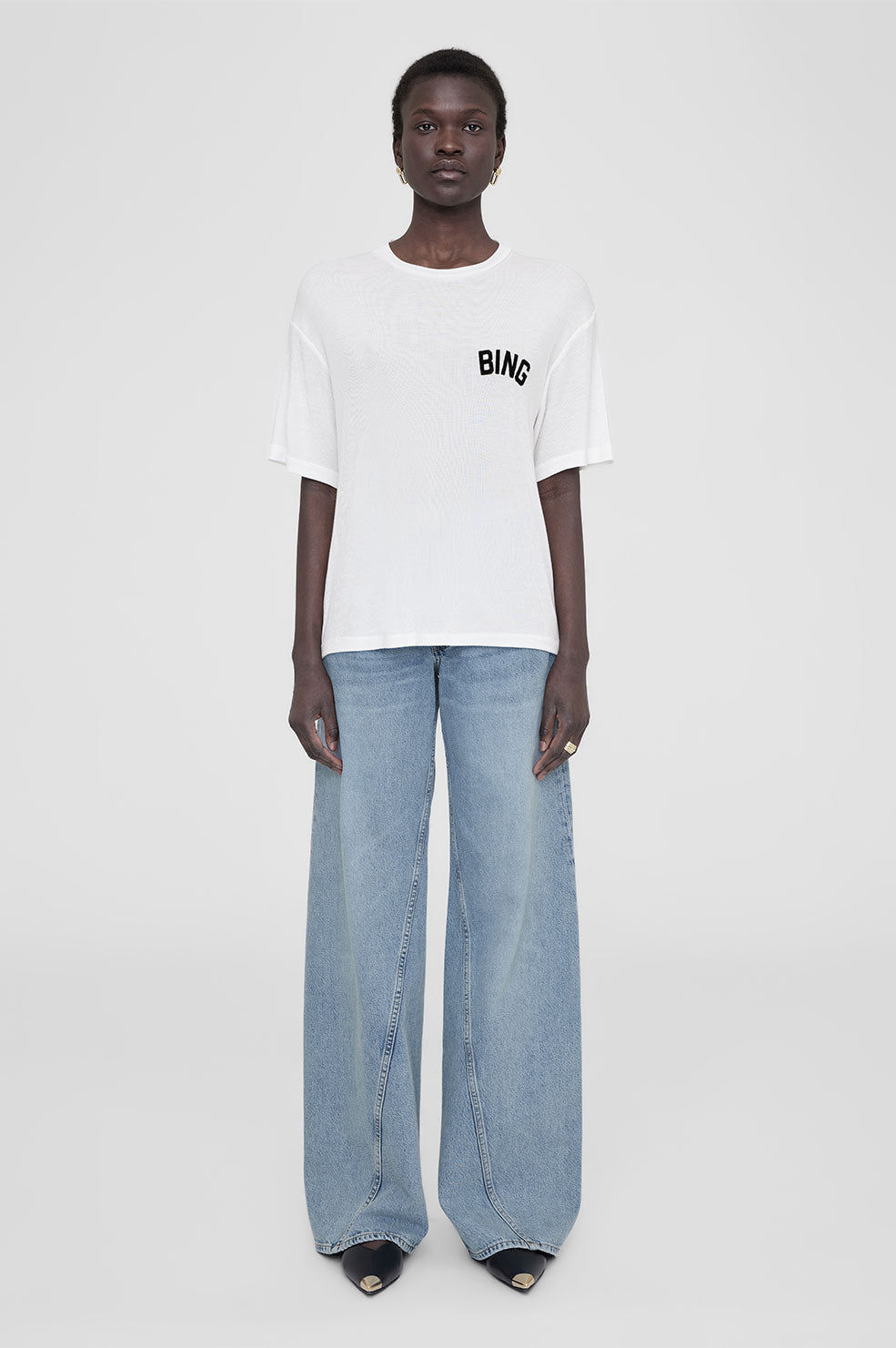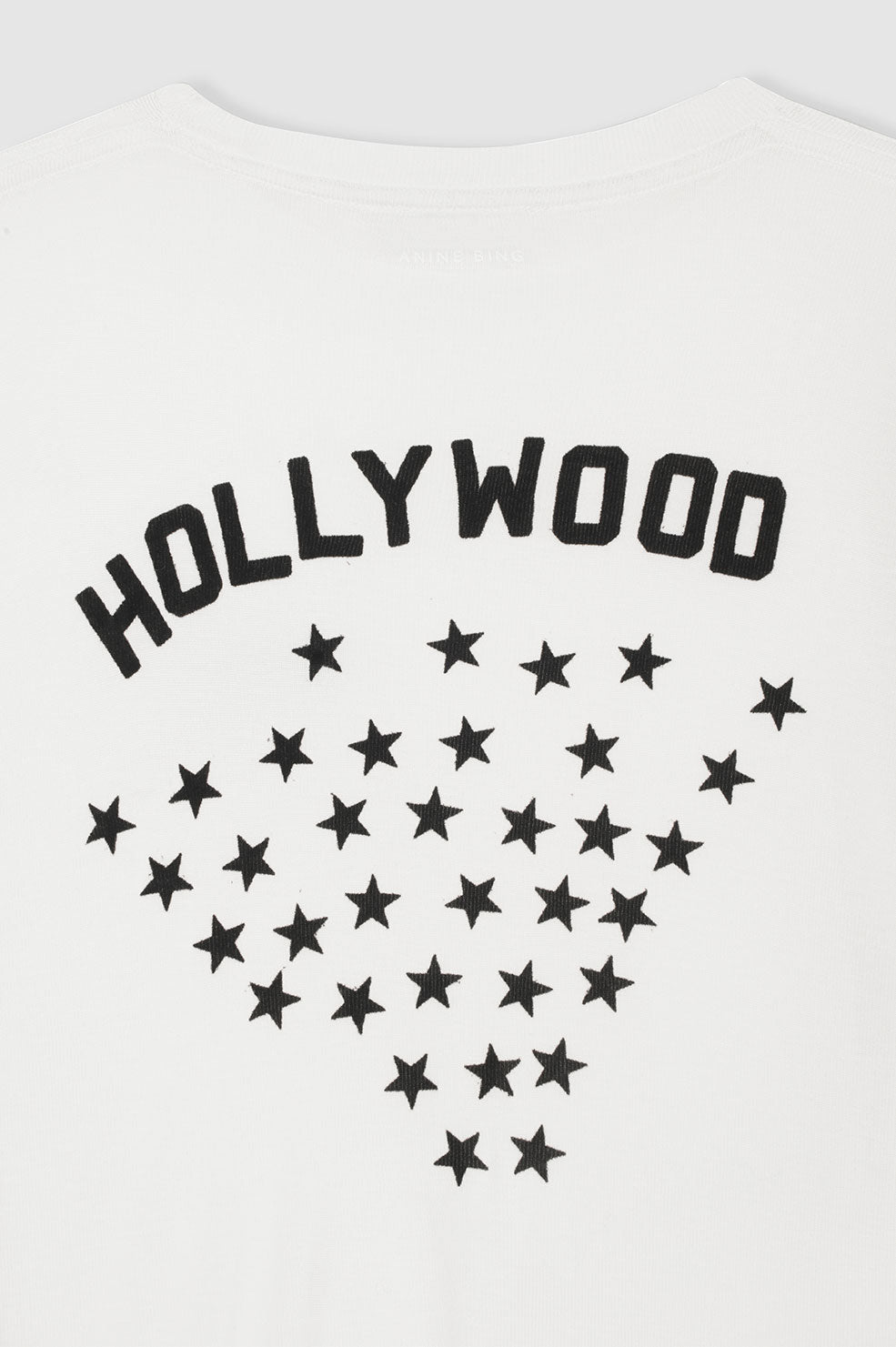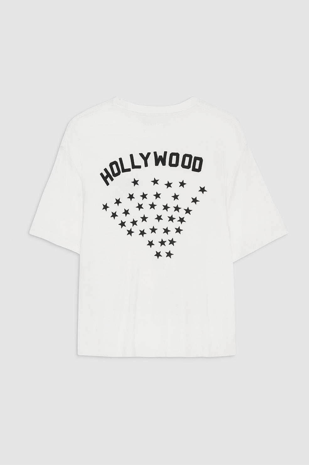 • The Louis Tee Hollywood is crafted from a lightweight, ribbed viscose jersey fabrication in an ivory wash. This soft and slightly sheer crewneck tee features a flocked, vintage-inspired Hollywood graphic on the back.