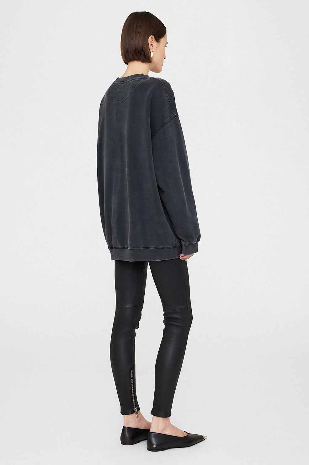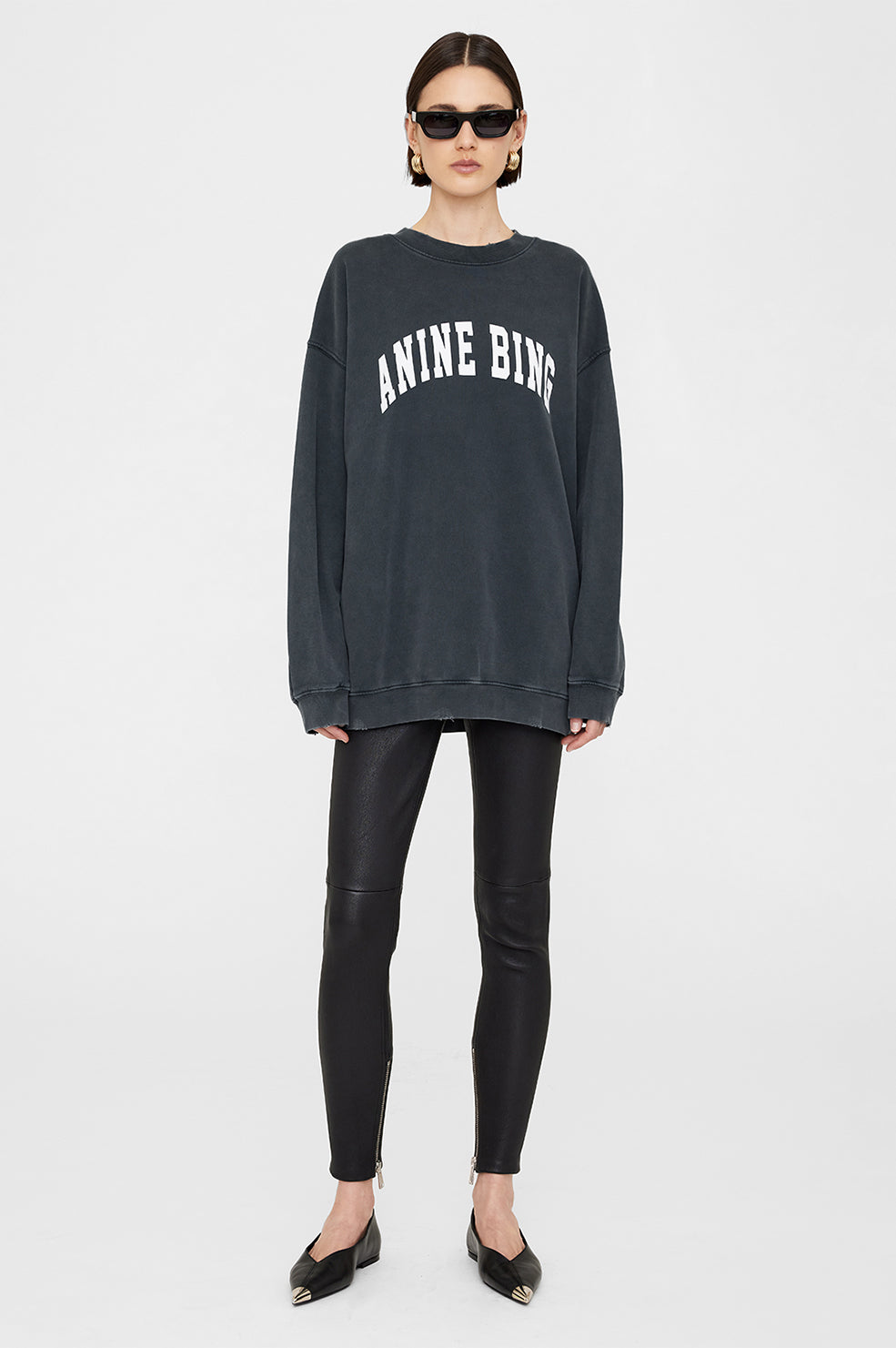 • The Tyler Sweatshirt is an oversized crewneck pullover made from midweight 100% cotton fleece in washed black. Screen-printed collegiate lettering at the center chest in contrast white adds to its vintage-inspired look. This style is finished with distressing along the ribbed trim at the collar, cuffs, and hem.