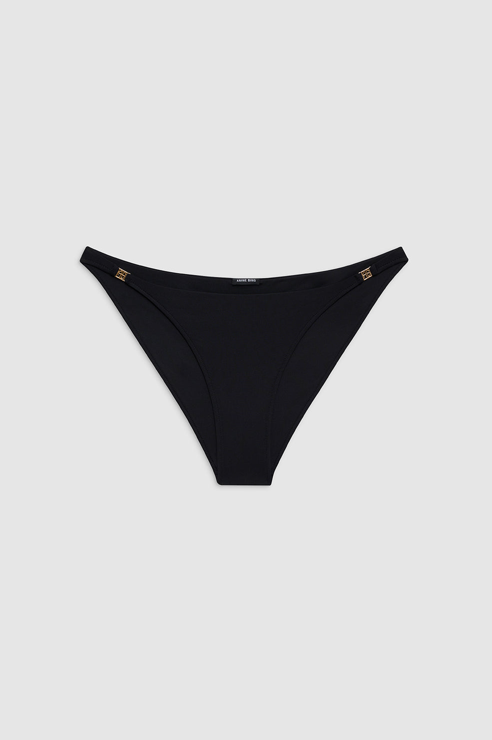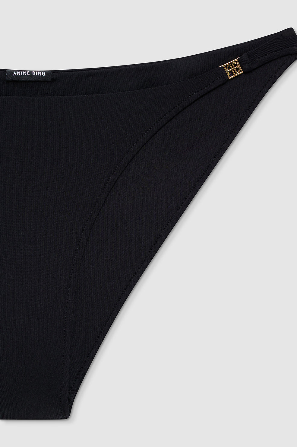 The Bellamy Bikini Bottom is constructed from a soft and stretchy swim fabrication in black. This fully lined swim separate is finished with thin side straps and a small hand-tacked ANINE BING monogram charm.