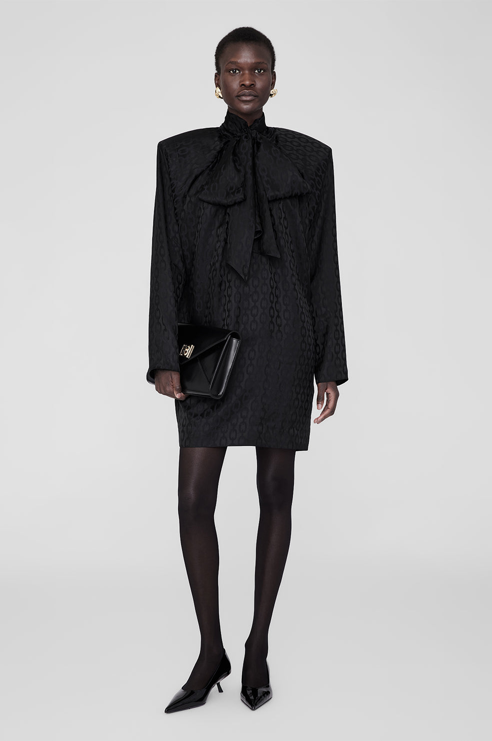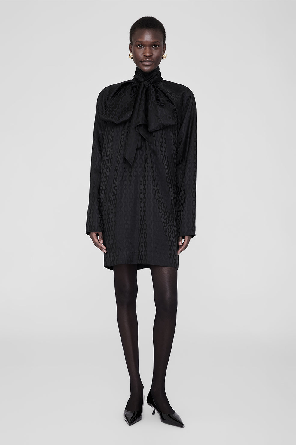 The Rachel Dress is cut for a straight, slightly oversized silhouette with a tapered, mini-length hemline. Take your true size.