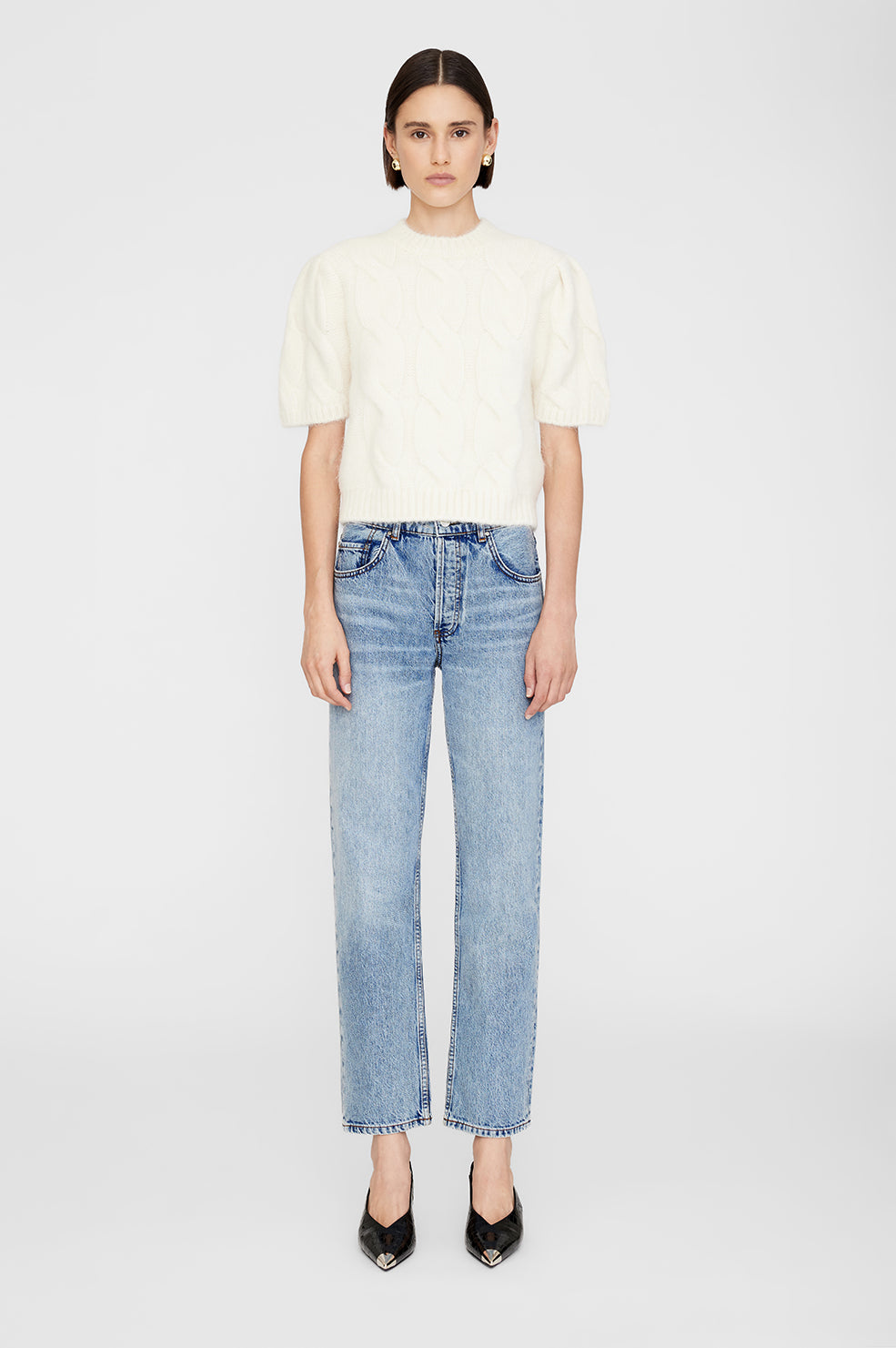 The Brittany Sweater is cut for a straight, boxy fit with a slightly cropped hem. Take your true size.
