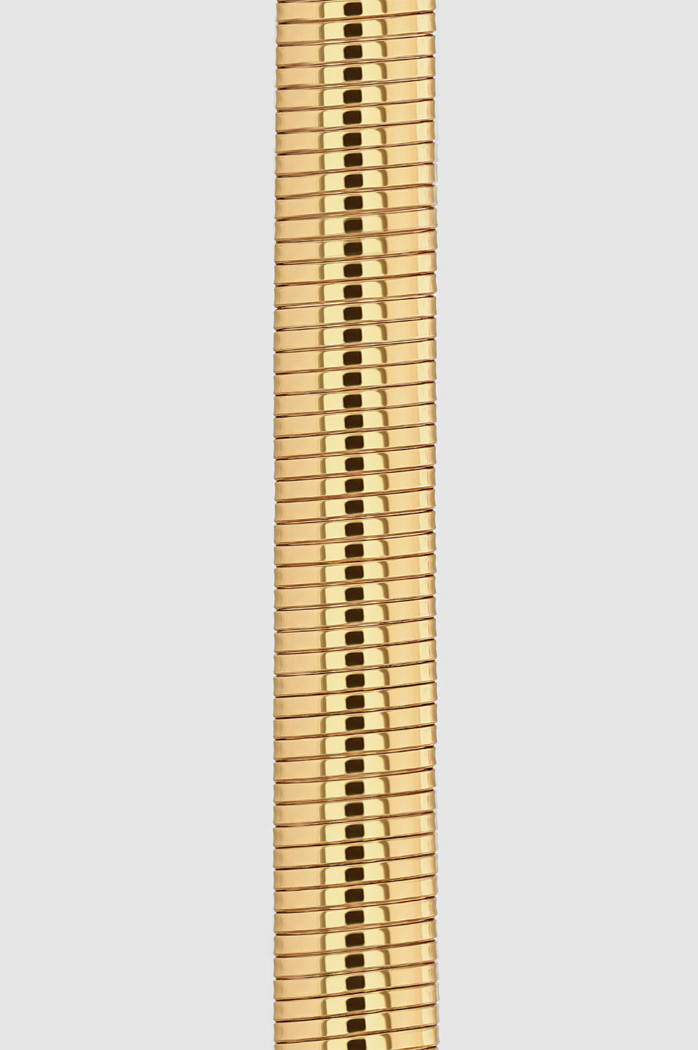 A statement necklace featuring a rigid coil chain crafted from 14k gold-plated brass. This modern piece sits high at the collar and is finished with a fold-over clasp closure engraved with subtle ANINE BING branding.