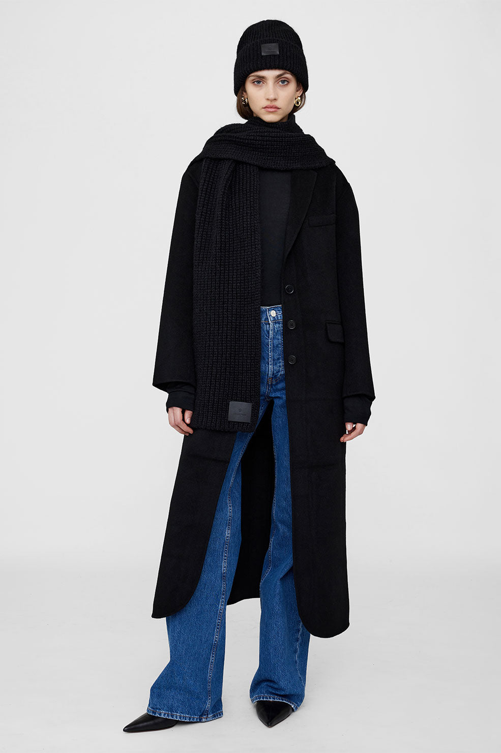 A cold-weather accessory made from a luxurious alpaca-wool yarn with all-over, vertical cardigan-stitch detailing. Its folded brim is finished with a small leather patch debossed with ANINE BING branding.