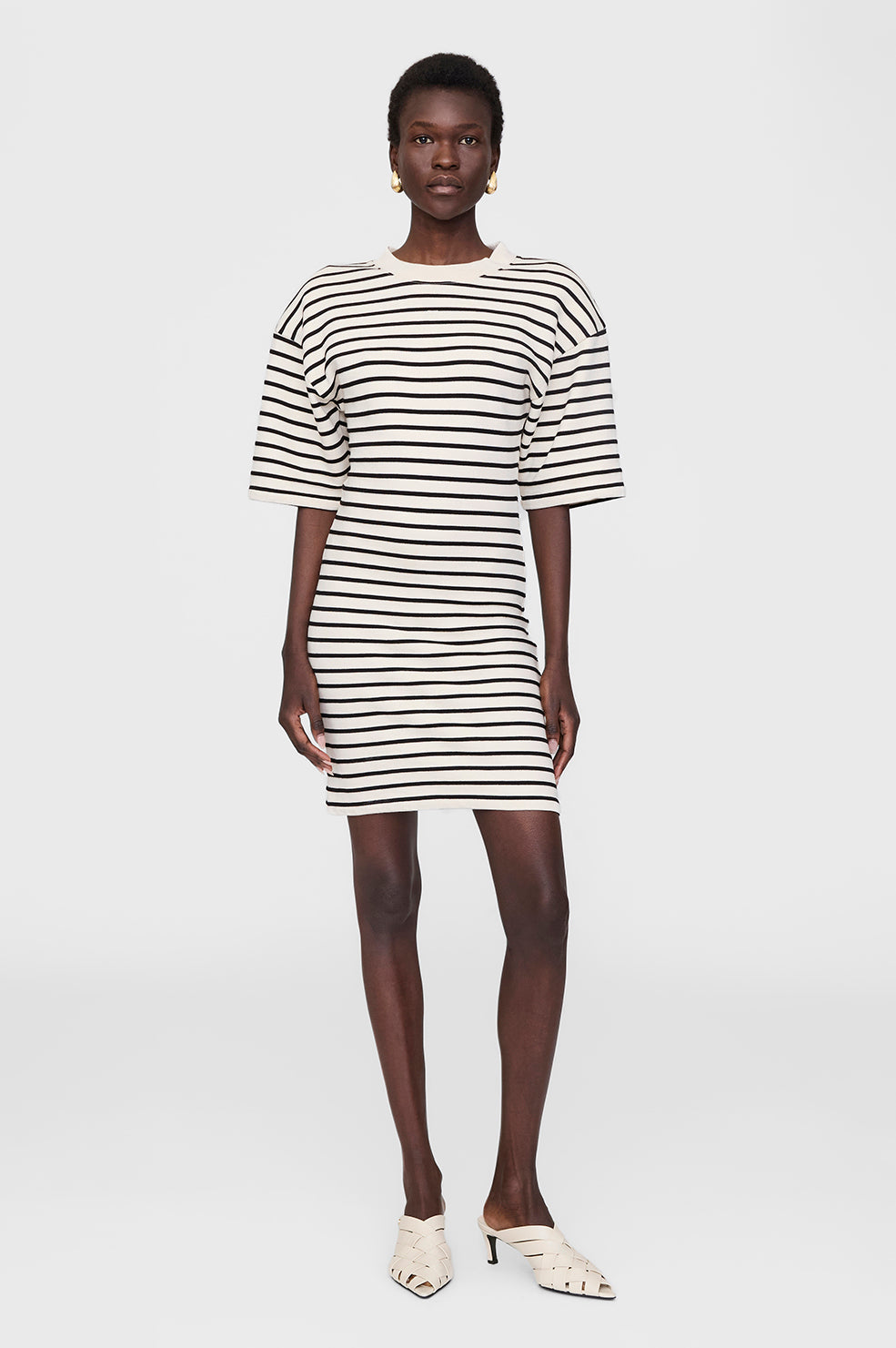 • A woven mule with flat straps made from smooth 100% leather in bone.
