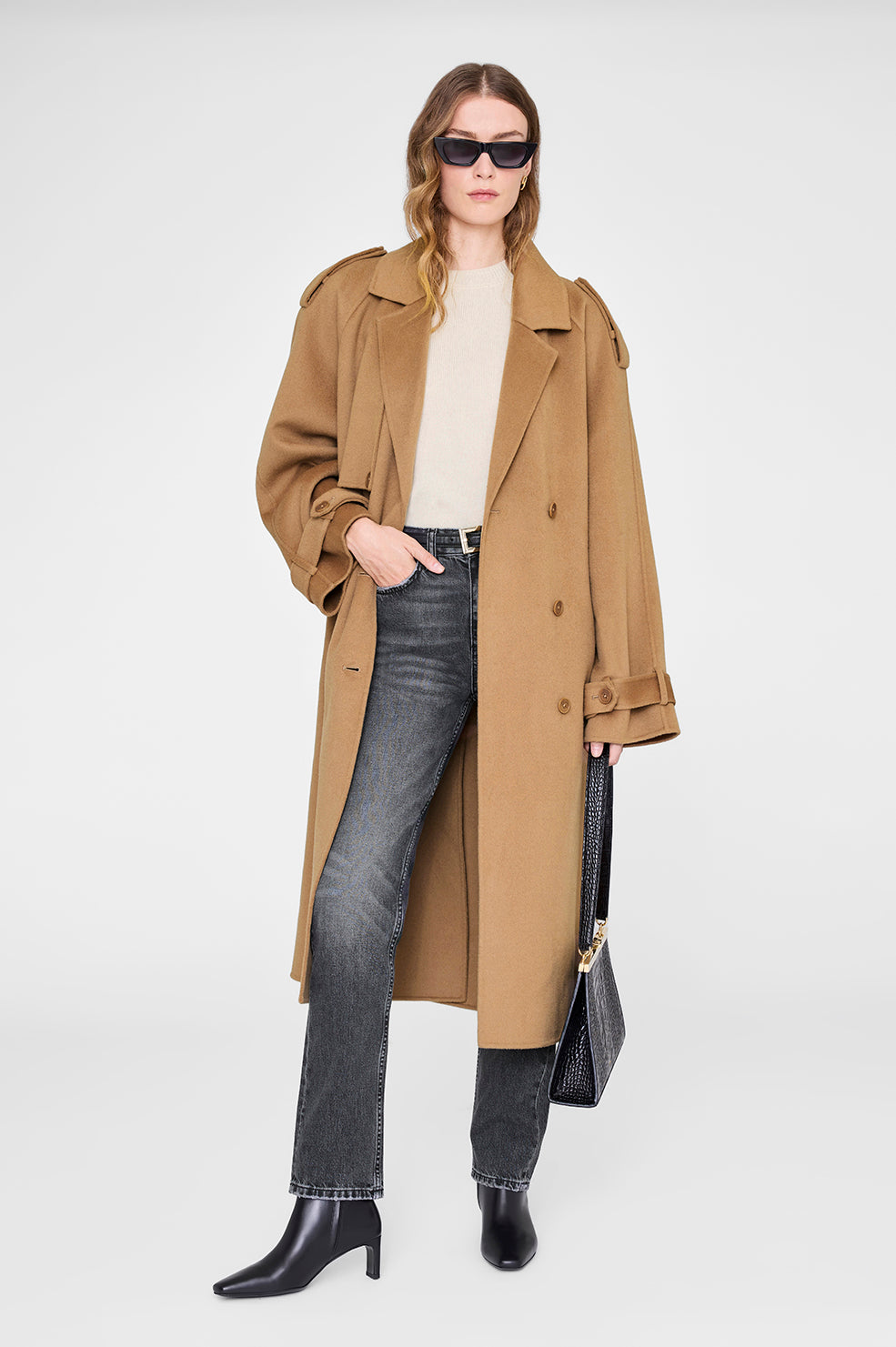 Modern angular booties made in 100% leather. The Jayden Boots' sleek construction features a sharp squared toe and a low day-to-night heel. Accented with gold-tone ANINE BING hardware at each heel.