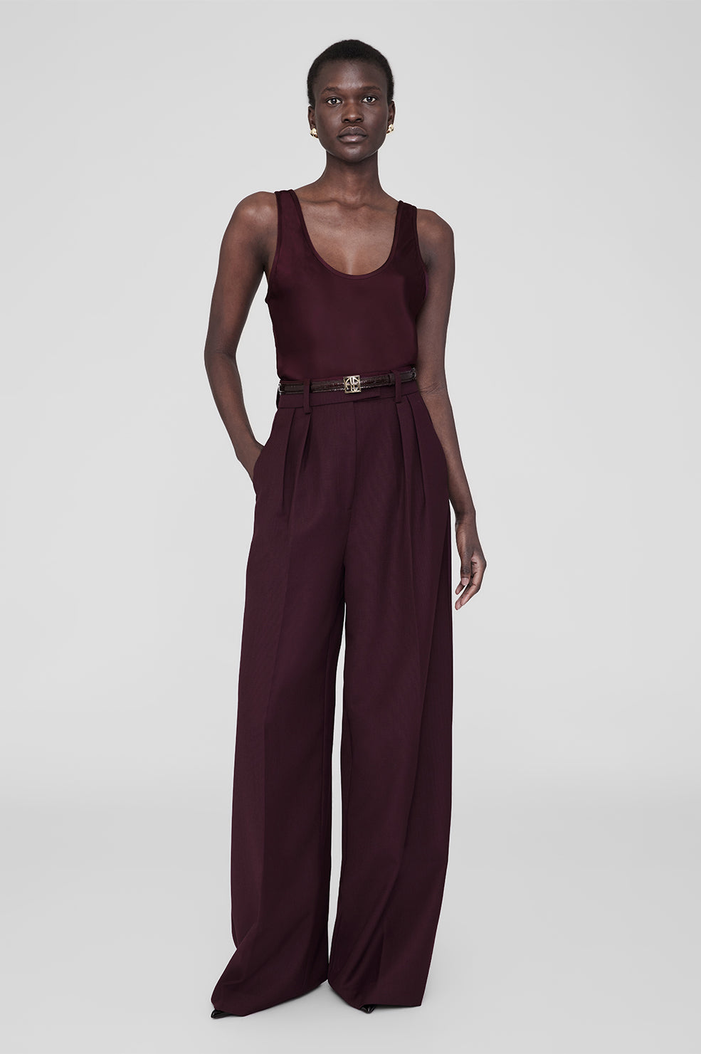 The wide-leg Lou Trouser is made from a light and breathable viscose blend with a slight sheen.