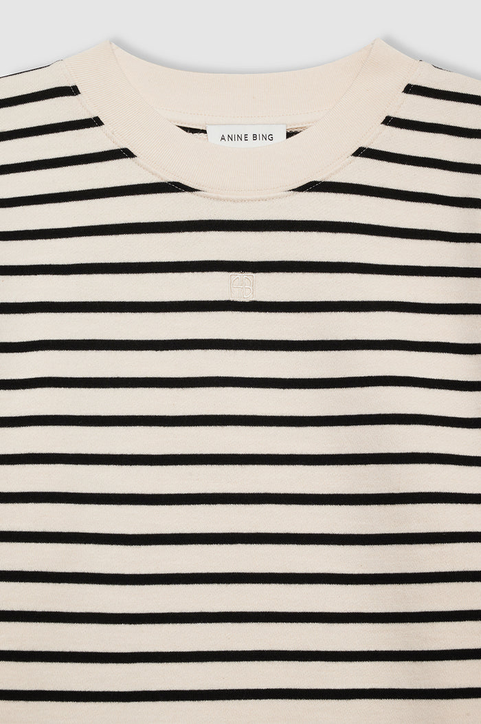 The Mona Dress is made from a midweight cotton French terry fabrication with black and white Breton stripes.